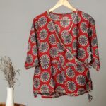 elegance to your wardrobe with this handcrafted block print cotton Designed with intricate floral motifs on a soft beige base, this top is perfect for casual outings, office wear, or ethnic styling. The long sleeves with contrasting red printed cuffs bring a unique charm, blending traditional artistry with modern comfort.